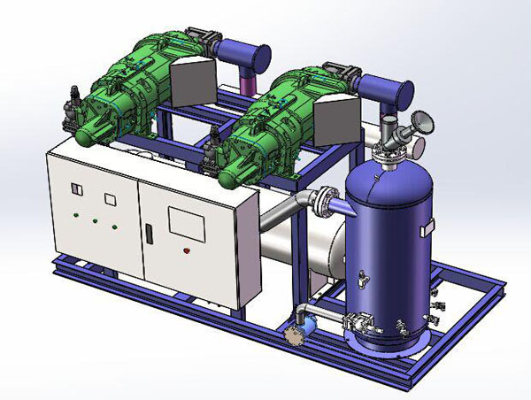 螺桿壓縮機、儲液器、儀表盤、高低壓力控制器、電控箱、油分離器、供液過濾器、吸氣過濾器、噴液冷卻系統(tǒng)